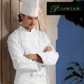 欧米で幅広く着用されている正統派デザインを採用した、高級レストランのシェフ用KAZEN(カゼン)のダブルのコックコートです。ボタンを外して、衿元を開襟にした立ち衿+ラペルカラーの着こなしも可能です。胸ポケットは高級感を演出する片玉縁ポケットを採用したコックコート。