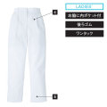 コストパフォーマンスの優れ、暑い職場環境に適した薄手素材の標準型ユニフォーム。素材には、ブロードを使用しました。細番糸を高密度に織り上げた薄手の定番素材。薄手ながらもしっかりとした素材は、高温多湿での作業に適しています。裾口二重カバーを付けた後ゴム仕様のストレートタイプのパンツ、女性用です。