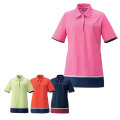 丈はチュニック丈で気になる腰回りをカバー。下2つのボタンは人に当たらない比翼仕立て。割れにくいシリコンボタンを使用。前立ては2枚重ねで、配色がのぞくデザイン。胸ポケットには名札やクリップライトをつけられるループ付き。ポケット口の伸びを防止します。