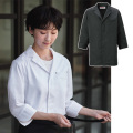 和洋折衷のボーダーレス調理コート。定番デザインを現代風にアレンジ。