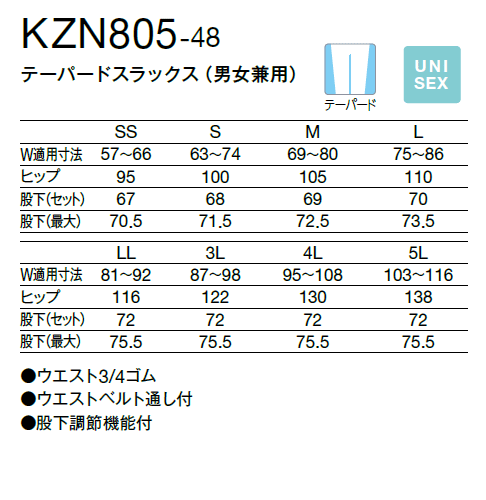 KAZEN(カゼン) KZN805-48 テーパードスラックス(男女兼用)
