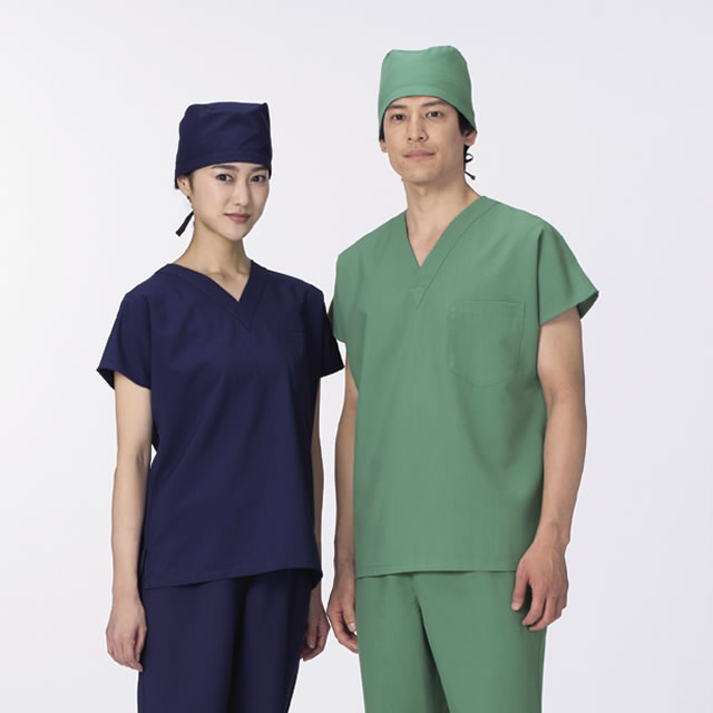 素材は糸の断面と超微細溝により、すぐれた吸汗・速乾性を実現した高機能素材です。綿タッチの肌触りと適度なストレッチ感が快適な着心地でICU・ERといった手術現場をサポートします。