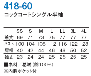 KAZEN(カゼン) 418-60 コックコートシングル半袖