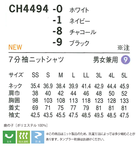 SEVEN(白洋社) CH4494 男女兼用ニットシャツ