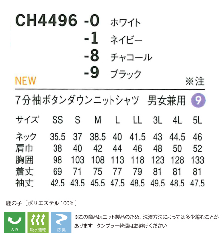 SEVEN(白洋社) CH4496 男女兼用7分袖ボタンダウンニットシャツ