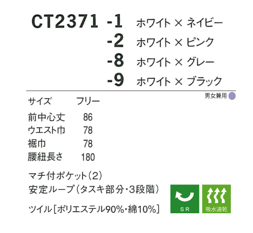 SEVEN(白洋社) CT2371 男女兼用胸当てエプロン フリーサイズ